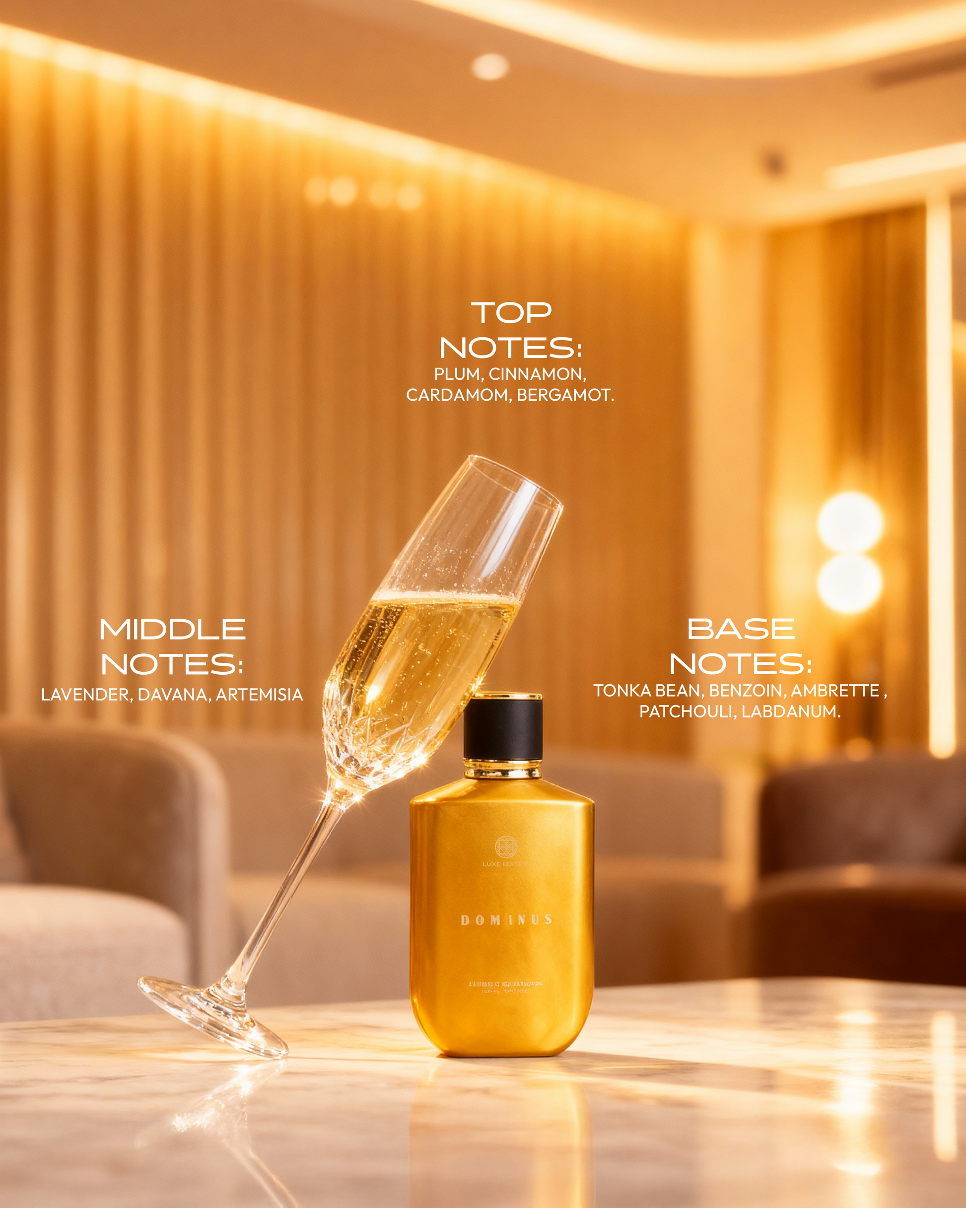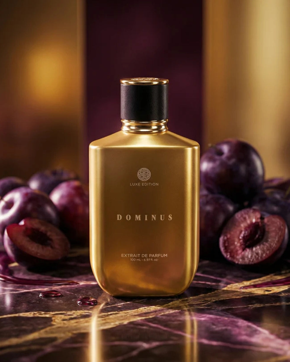Dominus is a bold and captivating fragrance crafted for men who carry confidence effortlessly. It opens with a rich blend of juicy plum and fresh bergamot, warmed by cinnamon and cardamom for a powerful first impression. The heart reveals aromatic lavender layered with davana and artemisia, adding depth and modern elegance. As it settles, a warm, ambery base of tonka bean, benzoin, ambrette, patchouli, and labdanum creates a smooth, long-lasting trail that feels intense, refined, and unmistakably masculine.