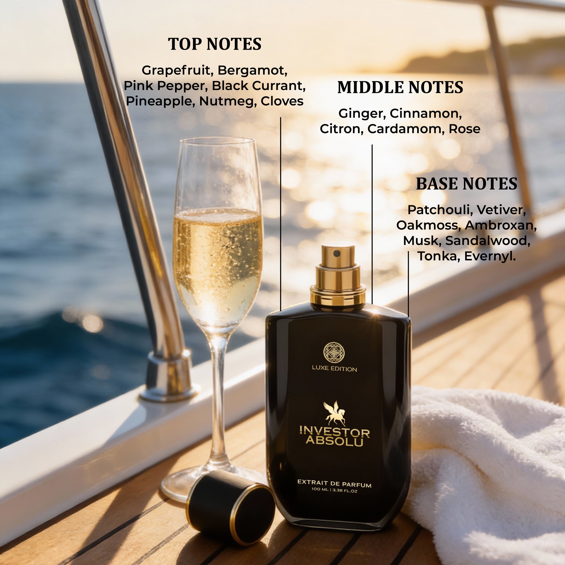 Investor Absolu – A bold citrus-spice explosion layered with fruity freshness and a powerful woody-musk base.