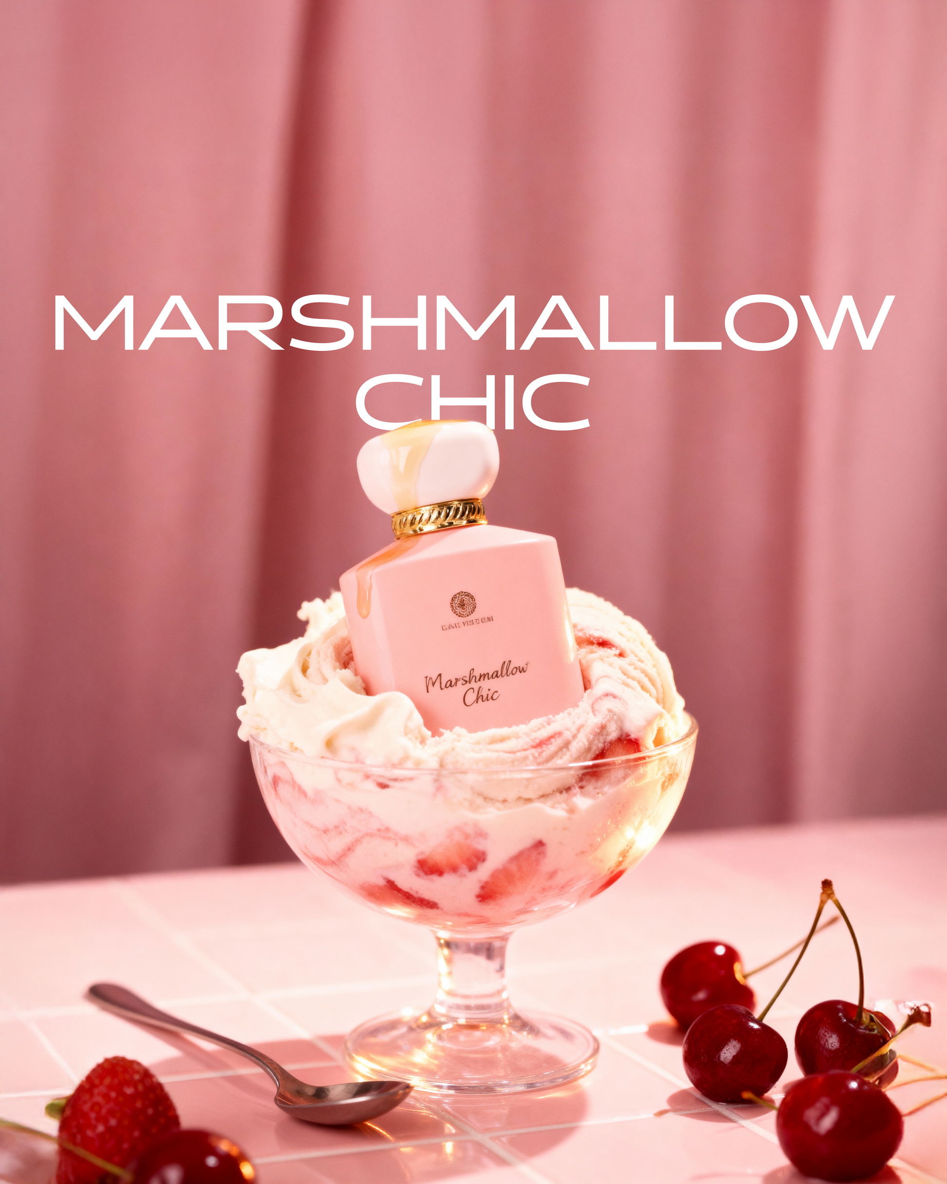Marshmallow Chic is a playful yet luxurious gourmand fragrance designed for women who love sweet indulgence with a stylish edge. It opens with a sparkling blend of apple, Italian lemon, freesia, and nectarine blossom, creating a fresh and fruity introduction. The heart reveals a soft, fluffy mix of pink marshmallow, juicy strawberry, creamy coconut, and delicate orange blossom, adding irresistible sweetness. As it dries down, whipped vanilla, sugary raspberry, pink musk, and ambroxan create a smooth, comforting trail that feels cozy, feminine, and delightfully addictive.